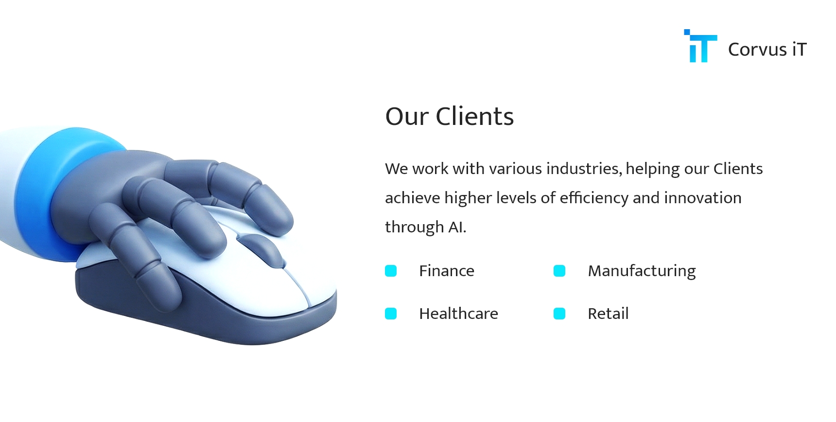 Our AI solutions have gained recognition in the market for their effectiveness and innovation. By working with us, you can be assured of receiving high-quality products and services that deliver real results. Our team of experienced engineers and data specialists work on innovative solutions that transform the way businesses operate.