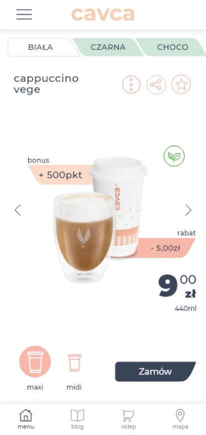 an application dedicated to the operation and ordering of coffee from CAVCA stations equipped with Melitta coffee machines. Customers can easily and quickly order their favorite coffees, customizing them to their preferences. The application enables online payments, which are convenient and secure, and also allows for tracking purchase history and using loyalty programs. Thanks to an innovative approach to coffee ordering - just a cup is enough to get your favorite personalized drink with a single click. The machine can be operated using the customer's phone app or the touchscreen on the device.
