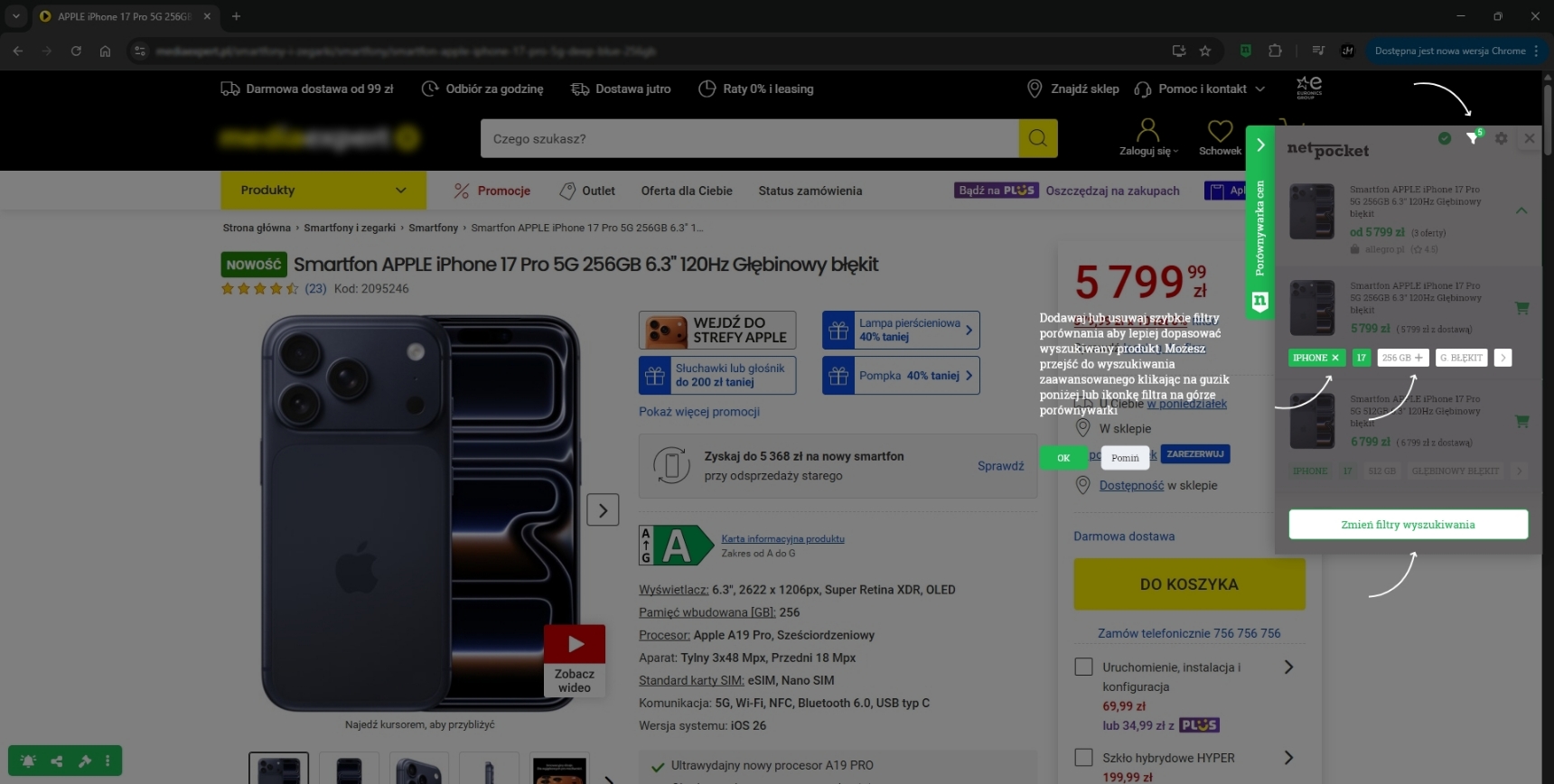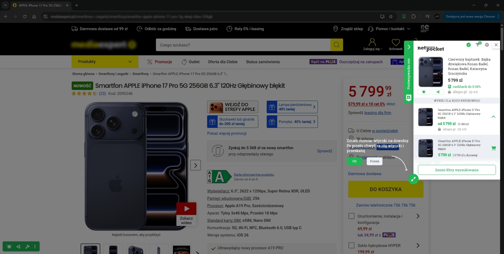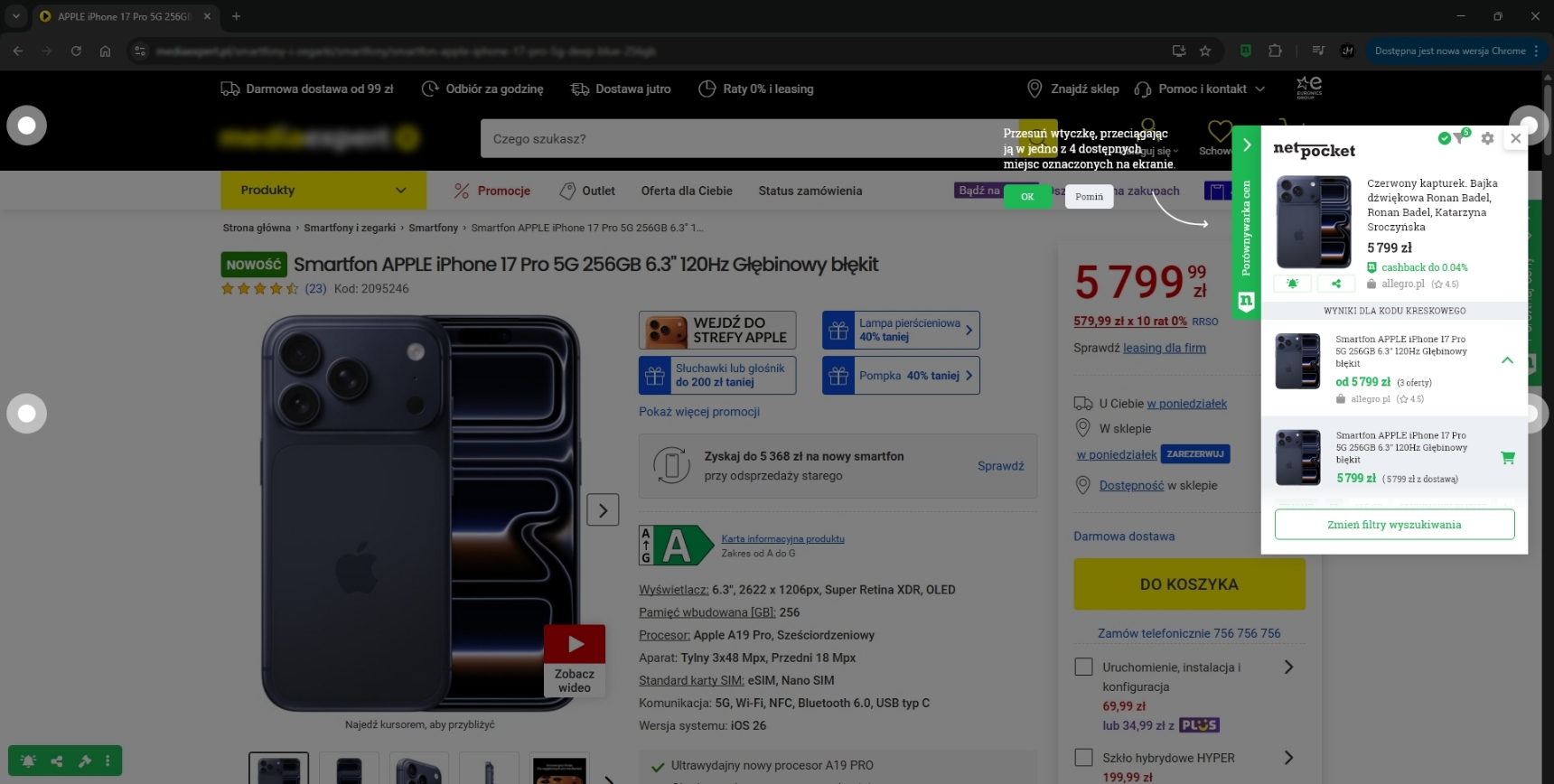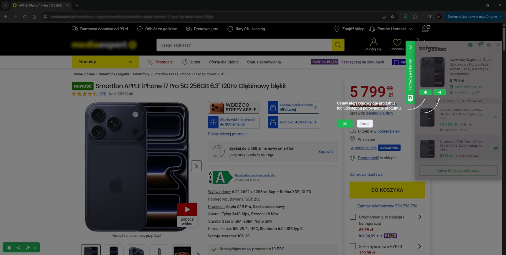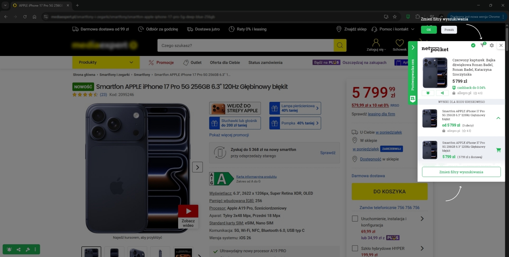 Net-Pocket is a browser extension that enables users to compare product prices directly while shopping online. Powered by advanced AI tools, the extension intelligently identifies the viewed product and finds identical or similar alternatives across multiple online stores. It delivers real-time price comparisons, helping users make faster and smarter purchasing decisions without leaving the current website.