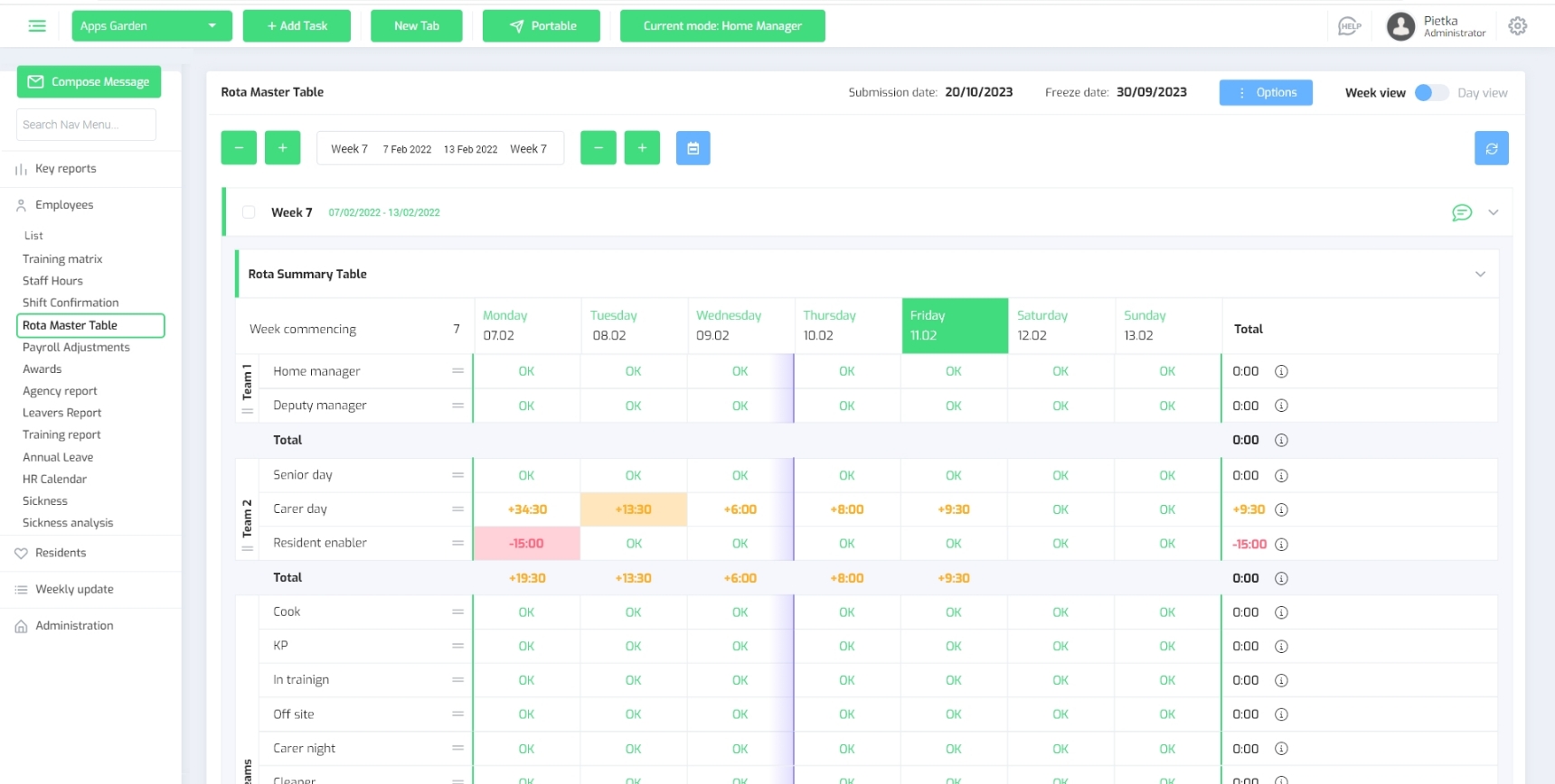 Advanced administration allowing for resource, procedure, and care home operation management.